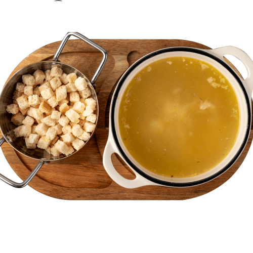 Пилешки бульон с царевица, моркови, целина, картофи, лук