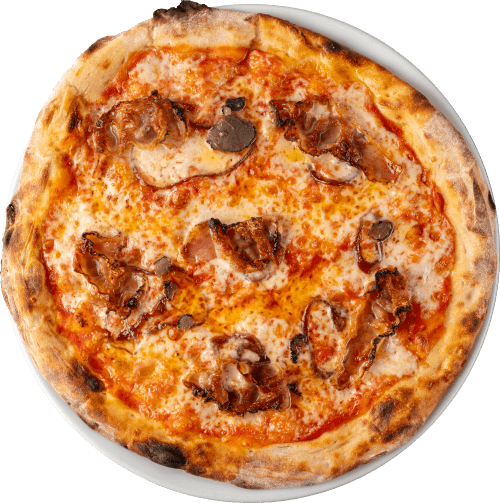 Салам с трюфел, хрупкав бекон, Микс италиански сирена, доматен сос, моцарела.