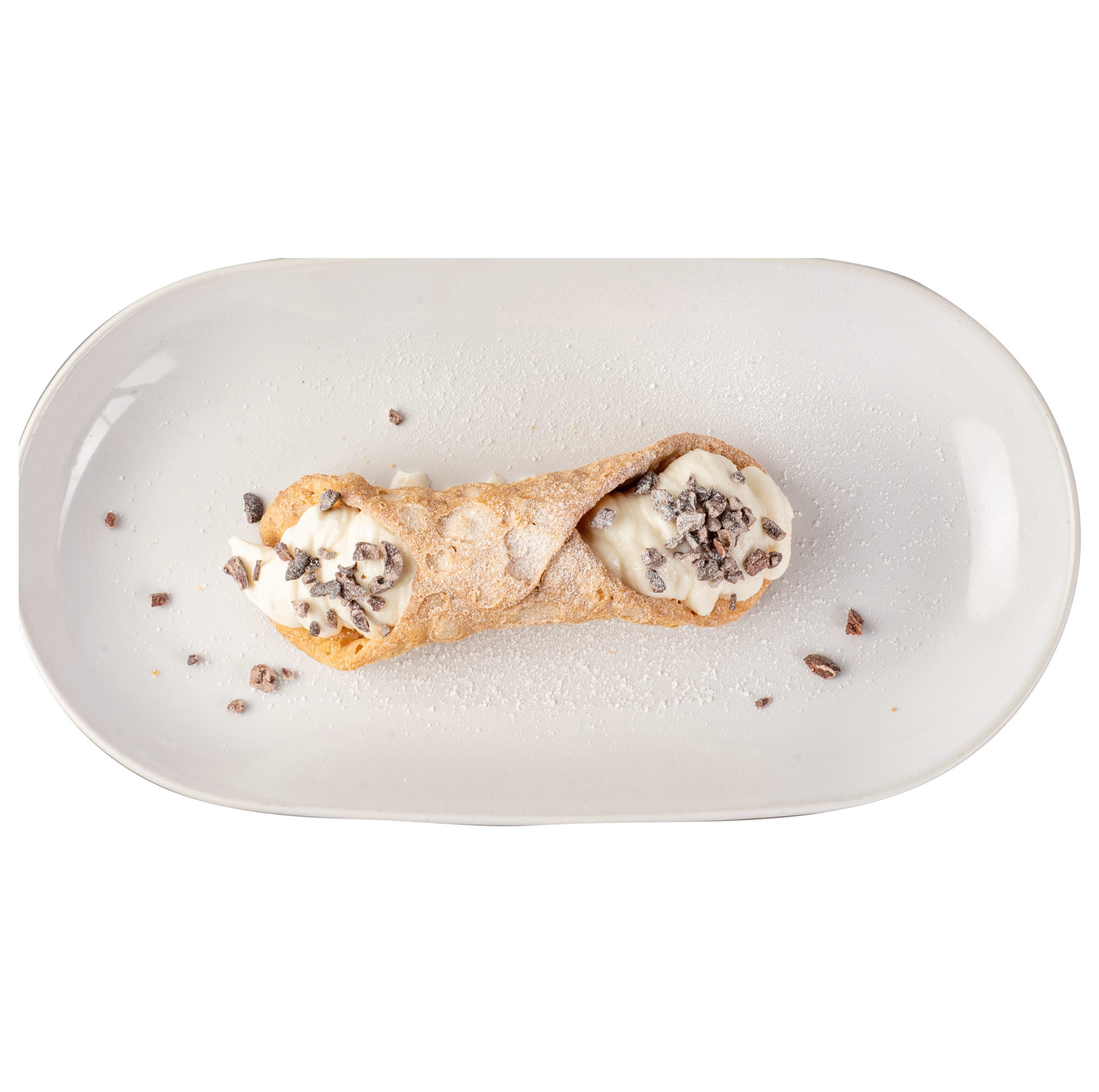 Хрупкава, пържена вафла с форма на тръба, пълна с кремообразно, подсладено овче сирене рикота.