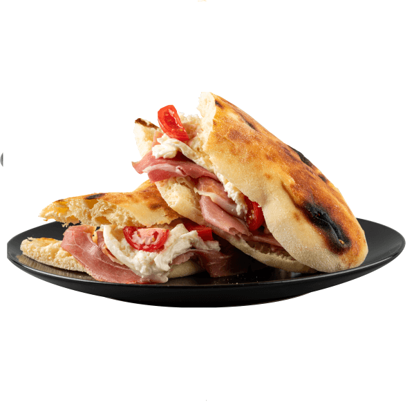Сурова шунка, бурата и чери домати
