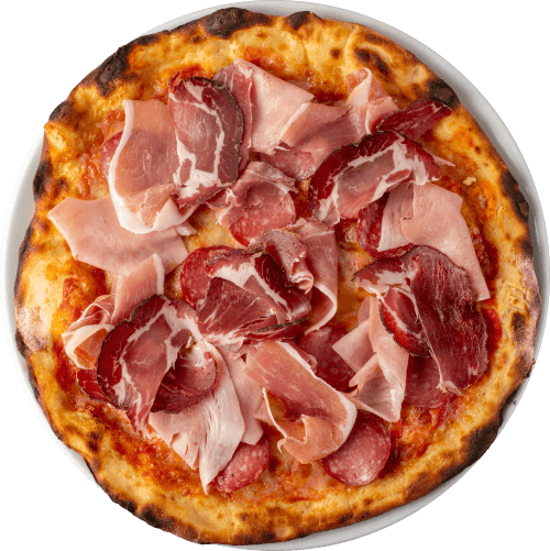 Салам Милано, варена шунка, сурова шунка, филе с трюфел, доматен сос, моцарела